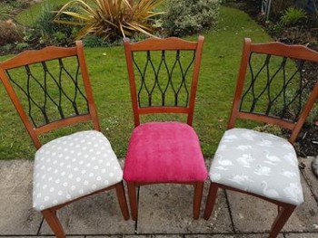 Waste is reduced and this older and quite fantastic furniture gets a new lease of life. Our professional upholstery colleagues and our talented, have a go customers, produce some truly astounding pieces – a number of which are featured here, Some of these items are for sale in our upstairs furniture and cushion showroom – well worth a visit!